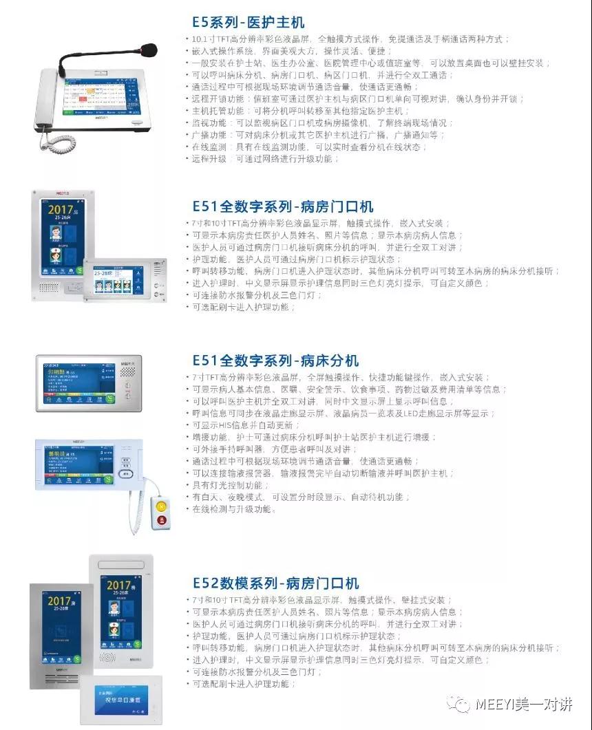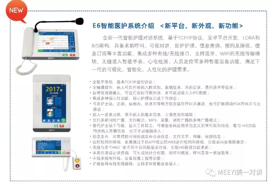 本次展會,MEEYI美一對講將展出最新的、擁有自主知識產權的全新一代智能醫護對講系統↓