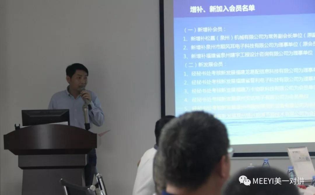 本次活動的主要內容有:召開泉州智能裝備產業協會第一屆一次 理事會議;福建環宇通信息科技股份公司企業參觀走訪;專家委員會委員福建翰鼎投資董事長劉秋明博士作《成長期企業資本化目標及策略選擇》專題講座。