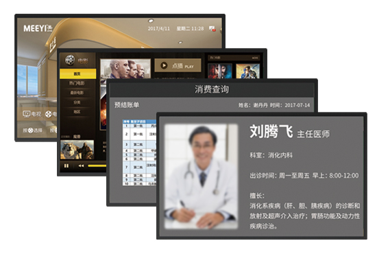 導航服務 ·支持開機LOGO定制畫面 ·支持中英文切換 ·支持開機祝福 ·支持開機視頻、圖片 電視服務 ·高清電視直播 ·電視錄播 ·手術錄播 ·電視回看